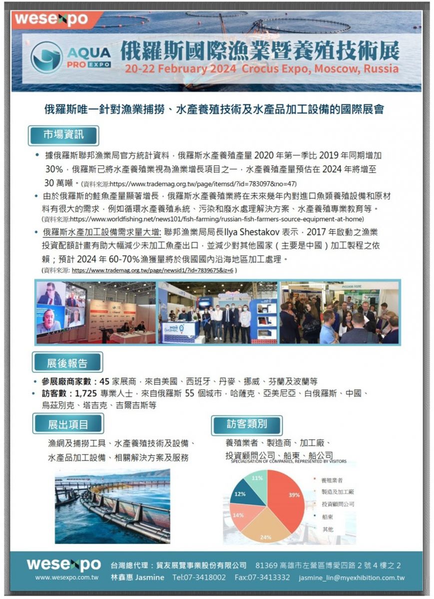 【展會】2024/02/20 ~ 22「俄羅斯國際漁業暨養殖技術展」歡迎本會會員企業報名參加。