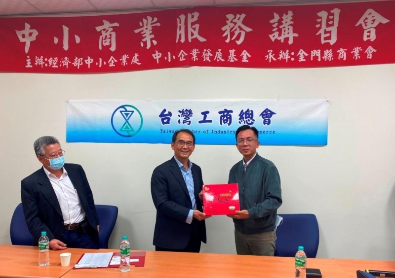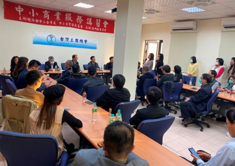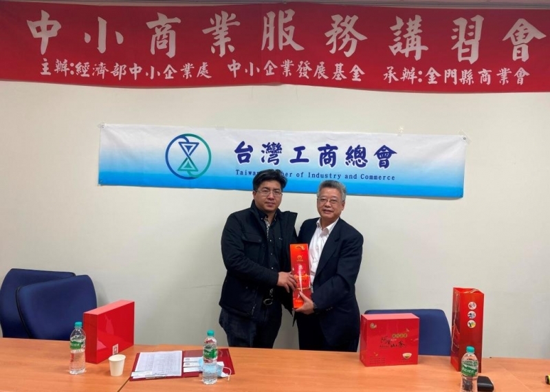 本會於2021年12月5日至7日由本會蕭吉森理事長偕徐珍翌總會長、何修榕會長一行35人到金門展開一連三天的交流參訪行程,並在6日下午四時三十分到金門縣商業會拜會交流,商會 理事長李有忠歡迎本會到訪金門,本次拜訪與商會理監事對於金門的再生能源、農業、傳統產業的創新等議題交換意見,晚間的交流餐會,感謝 工策會 吳伯揚總幹事的蒞臨參與,希望未來兩會之間有更多的合作空間。