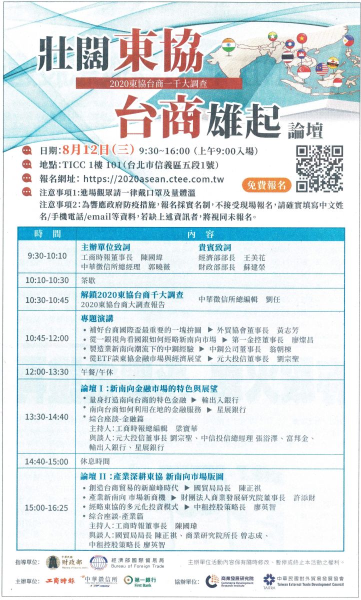 【活動】2020/08/12工商時報「壯闊東協 台商雄起」論壇